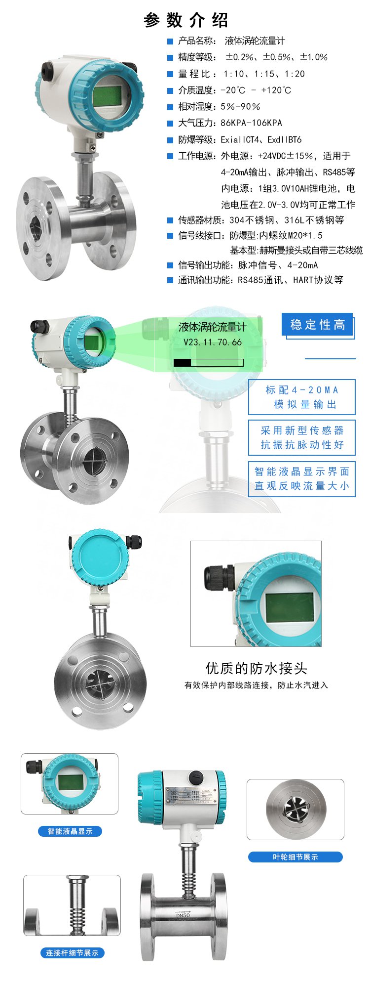 當(dāng)被測液體流過傳感器時,在流體作用下,葉輪受力旋轉(zhuǎn),其轉(zhuǎn)速與管道平均流速成正